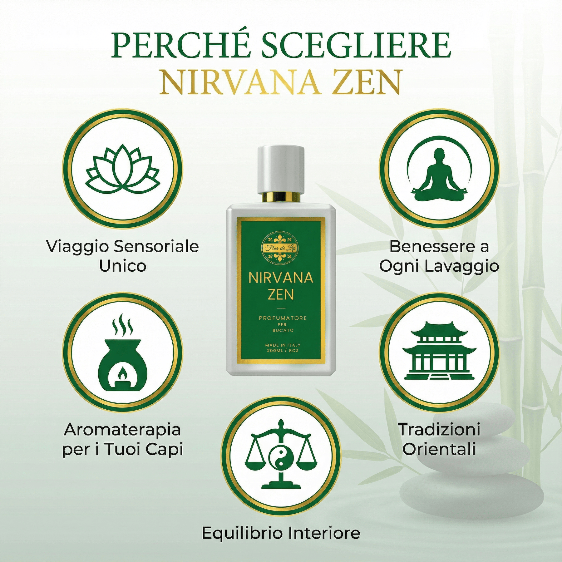 ✅ Esclusività e Raffinatezza: Studiata e perfezionata dai nostri nasi profumieri più esperti, Nirvana Zen è pensata per chi cerca una fragranza sofisticata e inimitabile.